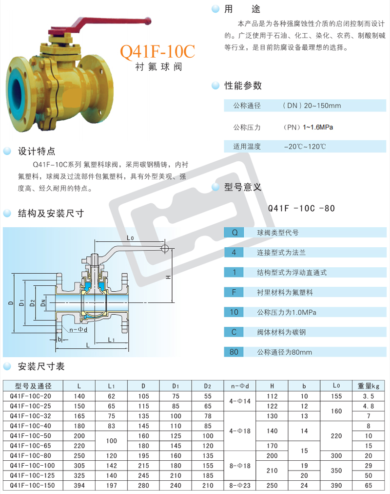 Q41F-10C系列襯氟球閥是為各種強腐蝕性介質的啟閉控制而設計的,廣泛使用于石油、化工、染化、農(nóng)藥、制酸制堿等行業(yè),是目前防腐設備的理想選擇。